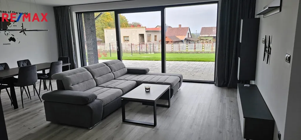 Nabízíme k dlouhodobému pronájmu novostavbu rodinného domu typu bungalov o velikosti 4+1 s garáží, který je situovaný v malebné lokalitě podhůří Beskyd v obci Dobratice. Tento cihlový dům, jehož zastavěná plocha činí 205 m² a užitná plocha 162 m², je ideálním místem pro rodiny s dětmi hledající klidné a bezpečné prostředí.
