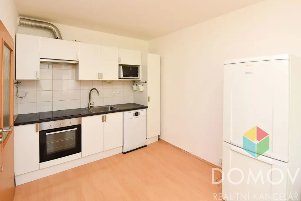 Byt se nachází ve 4 .NP cihlového domu s výtahem a je zařízen kuchyňskou linkou se spotřebiči.