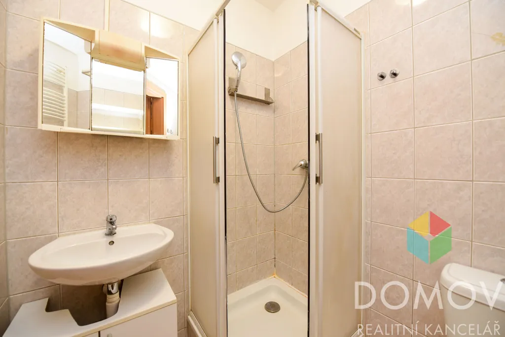 V koupelně je sprchový kout a WC.