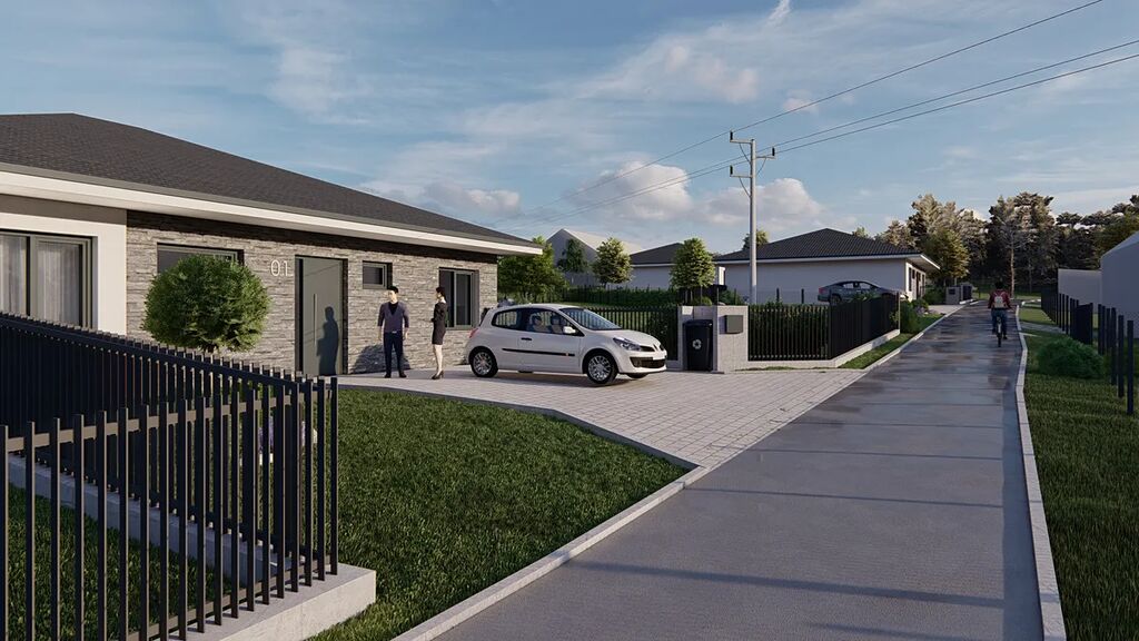 Dům ve výstavbě (nyní ve fázi uzavřené hrubé stavby)fotky jsou vizualizace budoucího stavu. Výhodou včasné rezervace je vlastní výběr barevných odstínů interiéru domu, venkovní dlažby, venkovní stínění (rolety/žaluzie) atd.