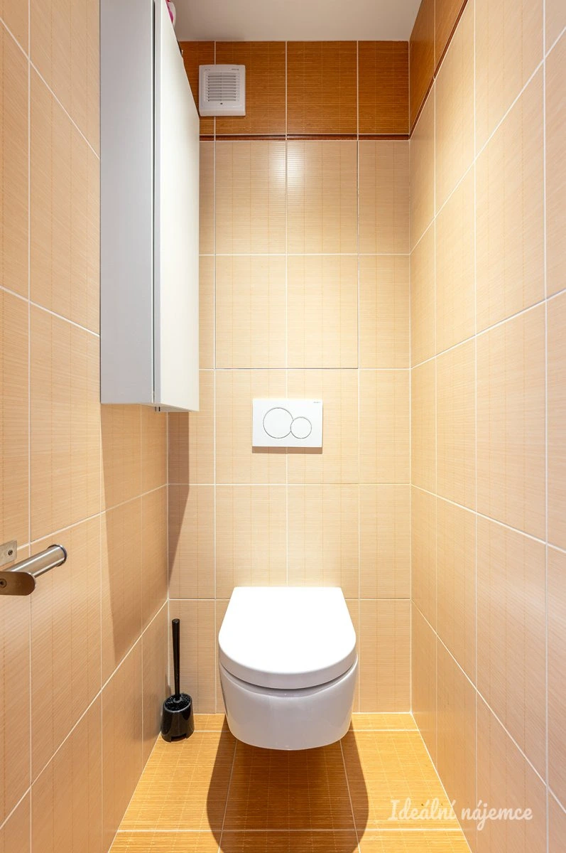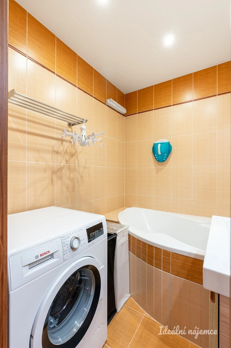 Byt se nabízí částečně vybavený. Kuchyně disponuje lednicí, myčkou, troubou, varnou deskou, mikrovlnnou troubou a digestoří. Obývací část je nezařízena. Součástí ložnice šatní skříň. Druhý pokoj je prázdný. V koupelně je vana a pračka. Toaleta je umístěna samostatně. V předsíni najdeme ještě komoru.