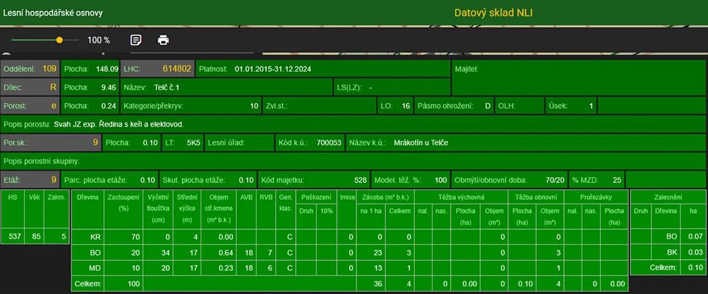 Stáří lesa a LHO viz foto.