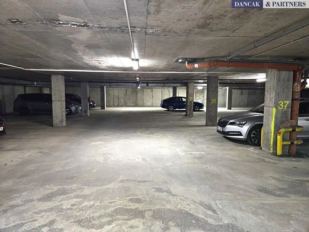 Stání pro jedno osobní vozidlo je umístěno v 1. podzemním podlaží budovy střežené kamerovým bezpečnostním systémem. Přístup je možný přes garážová vrata na dálkové ovládání, dále vstupem pro pěší nebo výtahem z domu.