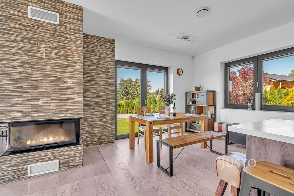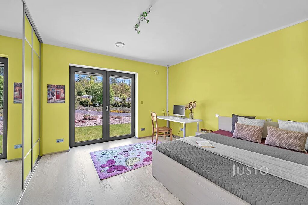 Tato samostatně stojící přízemní vila o užitné ploše 188 m² vznikla v roce 2018 a od první chvíle je promyšleným útočištěm pro rodinu. Praktické dispozice nabízí tři neprůchozí ložnice - ideální pro děti i dospělé, kteří touží po svém vlastním koutku. Všude vás provází přirozené světlo z velkých oken, která zajišťují propojení s venkovní přírodou. Moderní kuchyňská linka na míru je plně vybavená (lednice, myčka, trouba, varná deska). Nechybí ani dvě koupelny, jedna s vanou a sprchovým koutem, druhá se sprchovým koutem. Pro vaši pohodu je k dispozici podlahové vytápění, venkovní rolety a zabezpečovací zařízení.