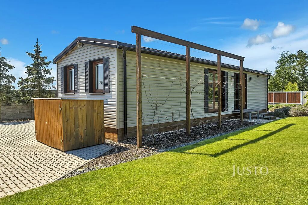 Co se mobilheimu týče, ten je o dispozici 4+kk a je napojen na inženýrské sítě. Lze jej využít pro návštěvy.