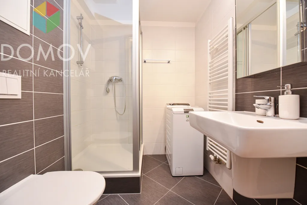 Koupelna je vybavena sprchovým koutem, umyvadlem a toaletou. Součástí bytu je také prostorná vstupní chodba.