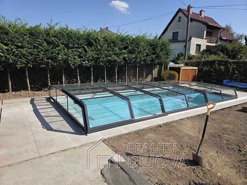 Součástí nemovitosti je pečlivě upravená zahrada, která v posledních letech prošla novým založením. Významným prvkem zahrady je moderní bazén vybudovaný v roce 2025, který díky rozměrům 7,5 × 3,5 metru nabízí příjemně velký prostor pro koupání i společné letní radovánky. Bazén je navíc opatřen kvalitním zastřešením, které prodlužuje koupací sezónu, chrání vodu před nečistotami a umožňuje komfortní využití i za horšího počasí. Kromě bazénu se na zahradě nachází také dětská prolézačka s domečkem a klouzačkou a praktický zahradní domek vhodný k uskladnění zahradního vybavení či dřeva ke krbu. Celý pozemek působí harmonicky a nabízí klidné zázemí pro každodenní život.