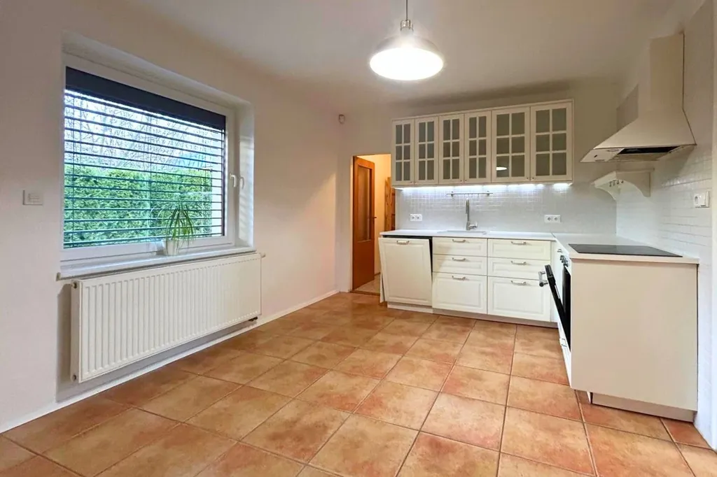 Nabízíme k pronájmu prostorný a pečlivě udržovaný rodinný dům o dispozici 4+1 s celkovou podlahovou plochou 222 m², dvojgaráží, dílnou a udržovanou oplocenou zahradou. Dům se nachází ve vyhledávané a klidné části obce Kyšice, v dojezdu několika minut do Kladna, Unhoště a s velmi rychlým napojením na dálnici D6 směrem na Prahu. Nemovitost nabízí nadstandardní soukromí, klid a komfortní bydlení v příjemné lokalitě s výhledem do okolní krajiny.