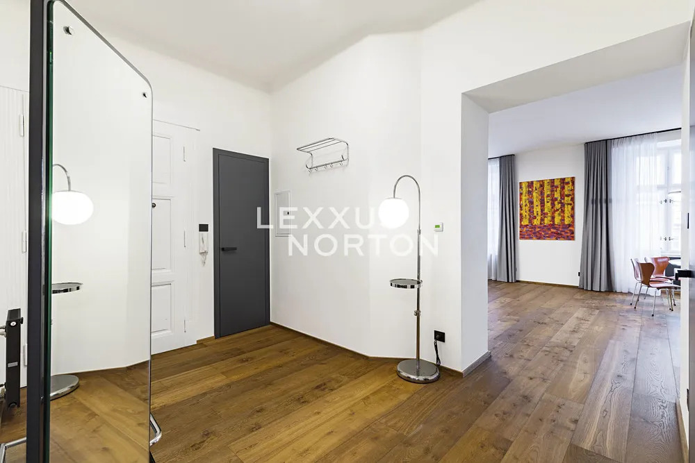 Byt se nachází v prestižní čtvrti Josefov, v klidné boční ulici souběžné s luxusní Pařížskou třídou, pouhých pár kroků od Staroměstského náměstí. Tato historická lokalita nabízí jedinečnou atmosféru s bohatým kulturním vyžitím – v bezprostředním okolí najdete Španělskou synagogu, Rudolfinum, Anežský klášter s jeho historickými zahradami, galerie, koncertní síně i širokou škálu vyhlášených restaurací a kaváren. Nechybí zde ani kompletní občanská vybavenost včetně základních i středních škol, lékařských ordinací, bank a kvalitních obchodů. Odpočinek nabízí klidné Alšovo nábřeží s výhledem na Vltavu nebo nedaleké Letenské sady. Dopravní dostupnost je výborná – stanice metra Staroměstská je vzdálená jen několik minut chůze, tramvajové zastávky v okolí pak zajišťují rychlé spojení do všech částí Prahy.