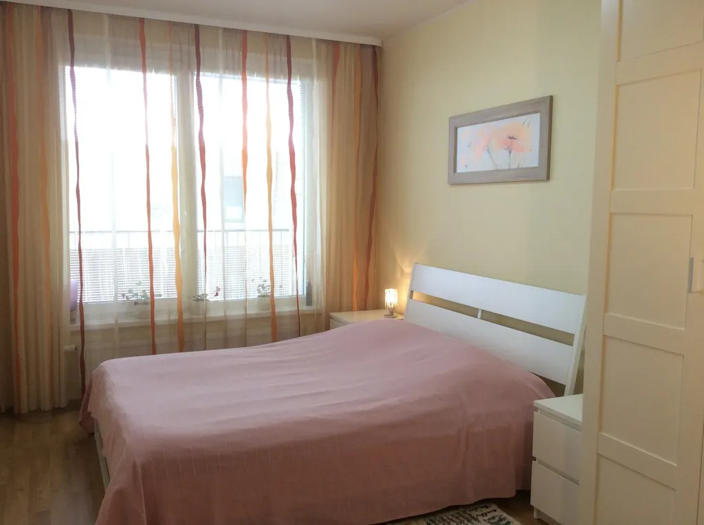 Byt sestává z obývacího pokoje s kuchyňským koutem, ložnice, předsíně a koupelny s vanou, umyvadlem a WC. Má velká okna, je příjemně světlý s krásným výhledem.