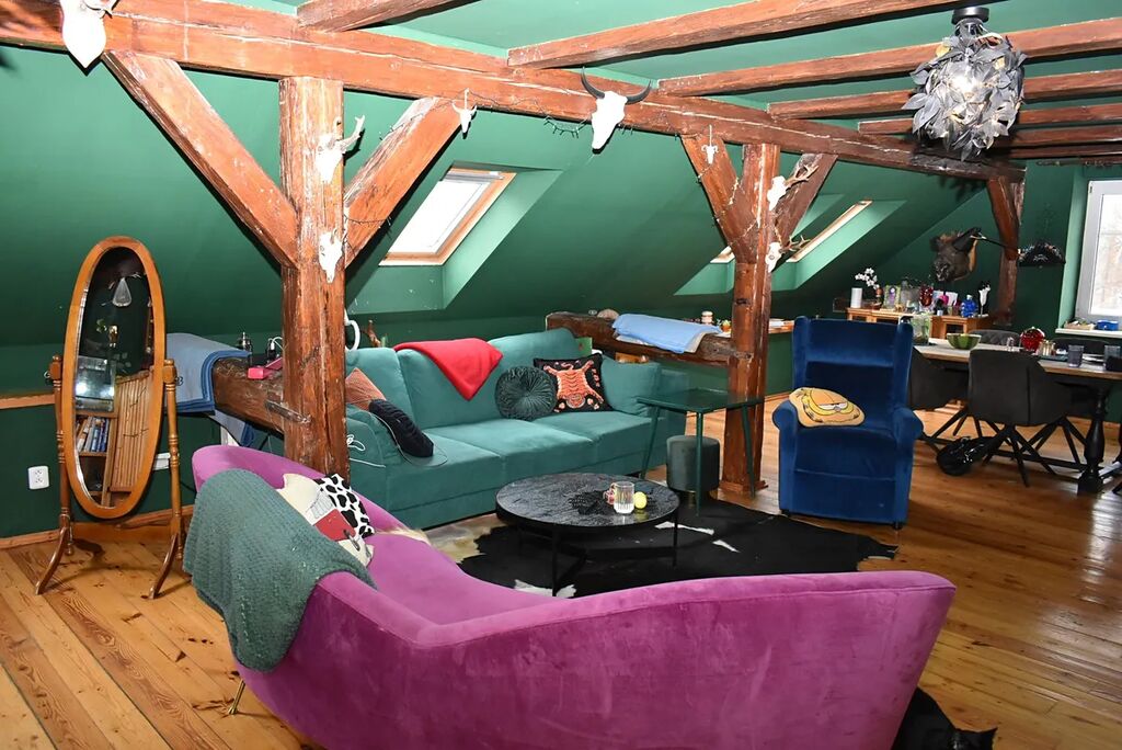 První byt 4kk o velikosti 96,8m2, druhý byt velký 3kk o velikosti175,4m2 a ještě byt 2kk o velikosti 72,3m2. Tyto byty mají společnou zahradu s bazénem a skleníkem. Parkování u domu pro cca 15 aut. Zdroj vody je kopaná studna a septik s trativodem. Rekonstrukce probíhala postupně od roku 2003 až do roku 2010.