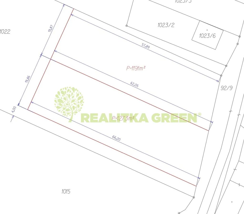 Celková plocha je 1.273m2, územním plánem vedeno jako plocha určená k bydlení a plochy zemědělské.