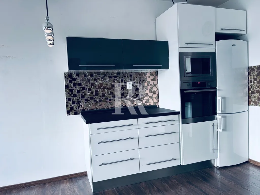 Kuchyňská linka je vybavena spotřebiči, včetně chladničky.