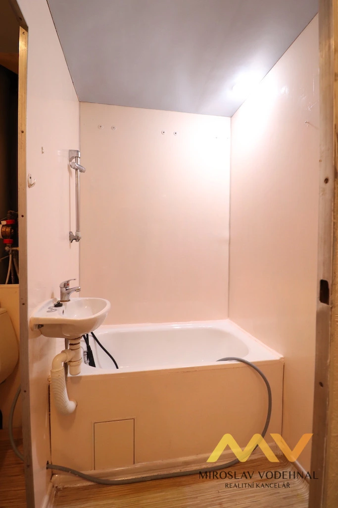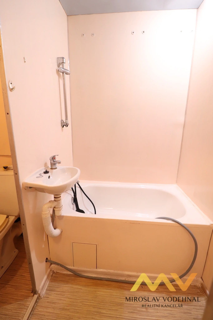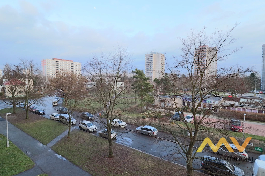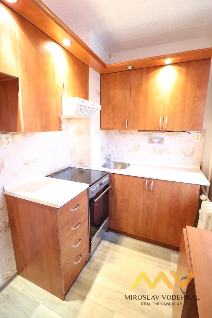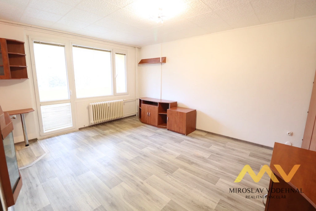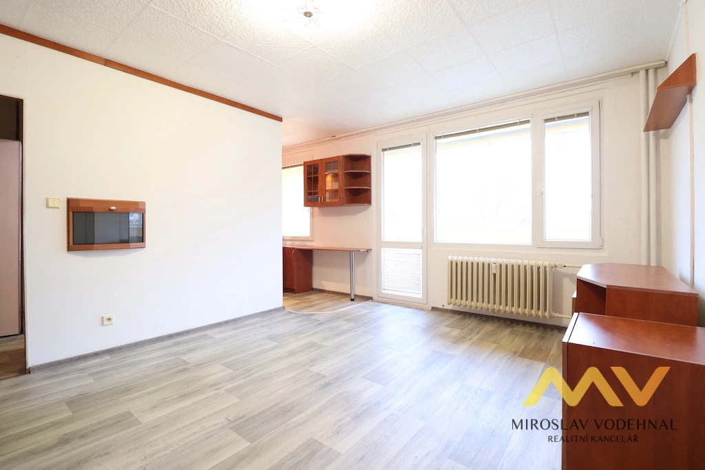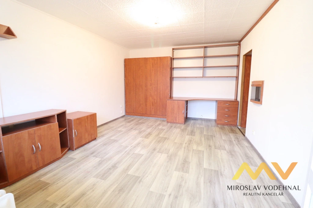 Pěkný, velice udržovaný, čistý a útulný byt s odděleným kuchyňským koutem vybavený pěknou kuchyňskou linkou s el. sporákem, jídelním barovým stolem. V obývacím pokoji pracovní stůl, vyklápěcí dvoulůžko. Bytové jádro je umakartové, koupelna je se sprchovým koutem (minivana), WC. V předsíni vestavěné skříně. Podlahová krytina PVC. K bytu náleží na patře umístěná komora s regály nahrazující sklep (vhodné i pro kolo), v domě kolárna. K bytu náleží prostorná zasklená lodžie 7 m2. Parkování volné před domem bez poplatku, MHD, plná občanská vybavenost, v okolí domu zeleň.