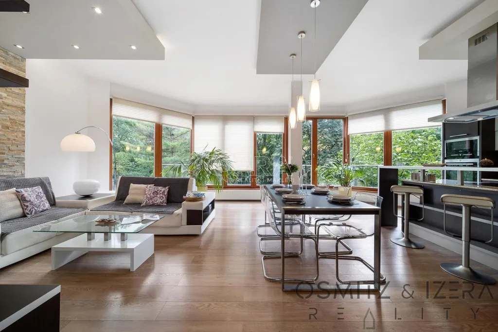 Nabízíme jedinečný byt s uklidňujícím výhledem do parku, který zabírá celé 2. patro klidného činžovního domu. Díky jižně orientovanému obývacímu pokoji s prosklenou stěnou je byt nádherně světlý a vzdušný.