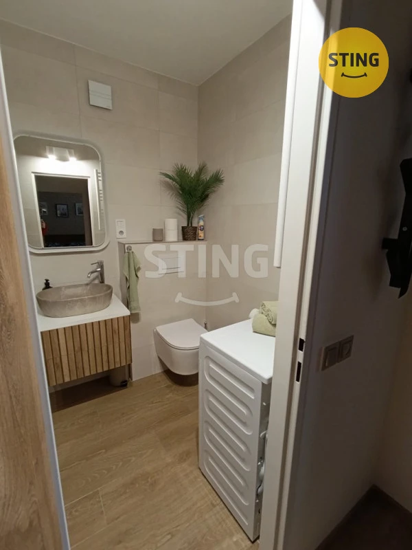 Byt disponuje samostatným prostorným pokojem, vybavenou a útulnou kuchyní, koupelnou se sprchovým koutem a prostornou vstupní chodbou. Pronajímá se plně vybavený.