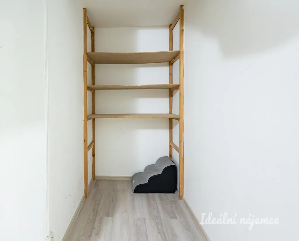 V koupelně se nachází sprchový kout, umyvadlo a pračku. Toaleta je umístěna samostatně. Výhodou bytu je dostatek úložných prostor - v předsíni se nacházejí dvě komory.