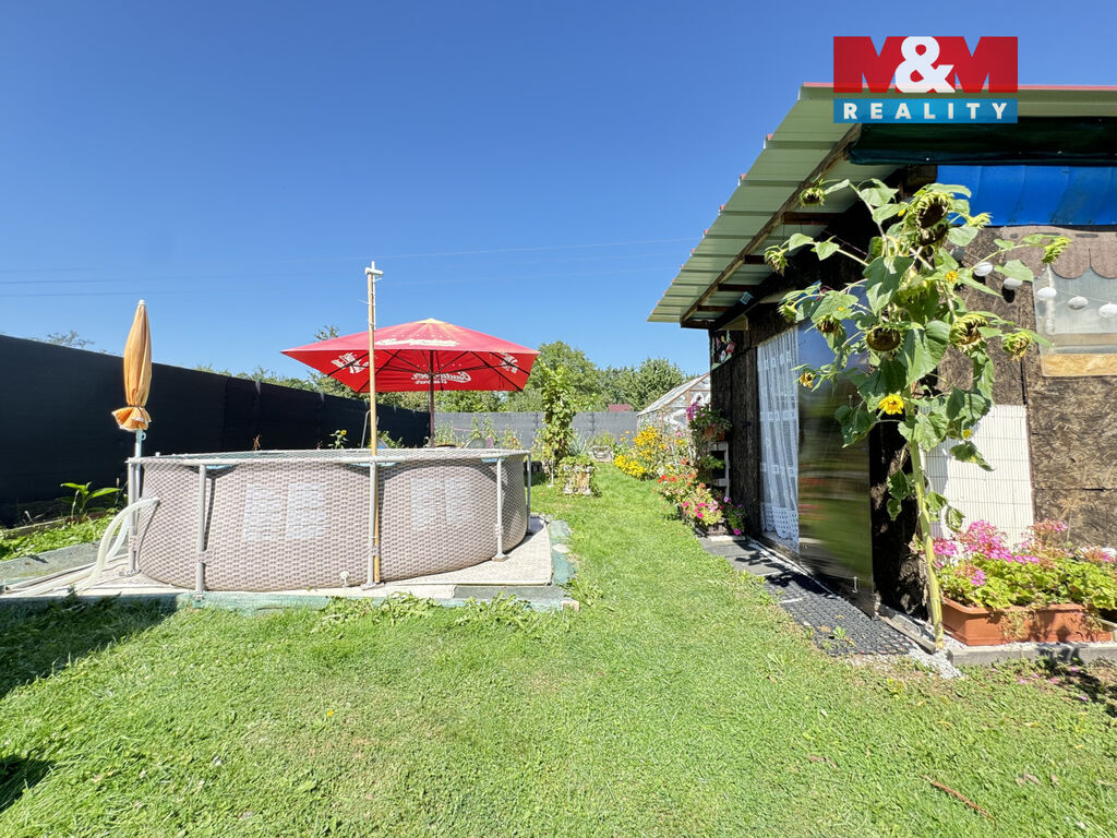 Hledáte místo, kde si okamžitě odpočinete od každodenního shonu? Pak vás nadchne chata se zahradou o rozloze 292 m², kterou nabízíme k prodeji v klidné části obce Horní Stropnice, v srdci malebných Novohradských hor, pouhých 7 km od Nových Hradů a 35 km od Českých Budějovic. Chata není vedena v katastru nemovitostí – jedná se o zahradní stavbu situovanou v udržované zahrádkářské kolonii. Místo je ideální pro rekreaci, víkendový pobyt nebo relaxaci v přírodě. Zahradní domek (chata) nabízí předsíň, manželskou postel a kuchyňskou linku s kombinovaným sporákem a troubou. Topení zajišťují kamna a stropní topný panel, díky čemuž lze chatu využívat i během chladnějších dní. Na zahradě se dále nachází pergola, bazén, karavan vhodný k přespání hostů, skleník, venkovní latrína a několik zahradních kůlen poskytujících dostatek úložného prostoru. Do chaty je zavedena elektřina, voda je užitková a dostupná sezónně od jara do podzimu. Zahrada se prodává včetně vybavení.