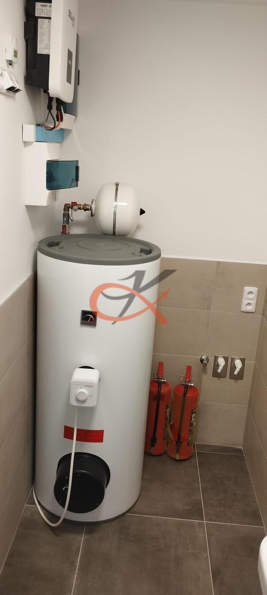 ohřev vody zajišťují fotovoltaické panely umístěné na střeše domu. Dům je