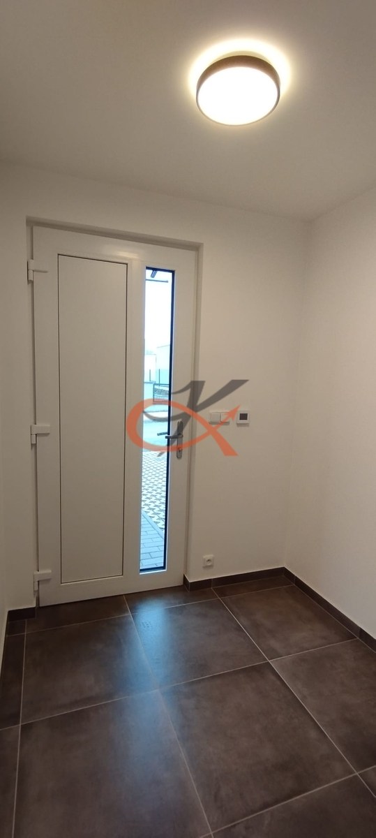 řadový, jednopodlažní rodinný dům o dispozici 4+kk. Dům nabízí 2 pokoje, ložnici se šatnou, koupelnu se sprchovým koutem a vanou, technickou místnost s wc, praktický spíž a otevřený obývací pokoj s plně vybavenou kuchyní. Jedná se o celomasivní dřevostavbu s