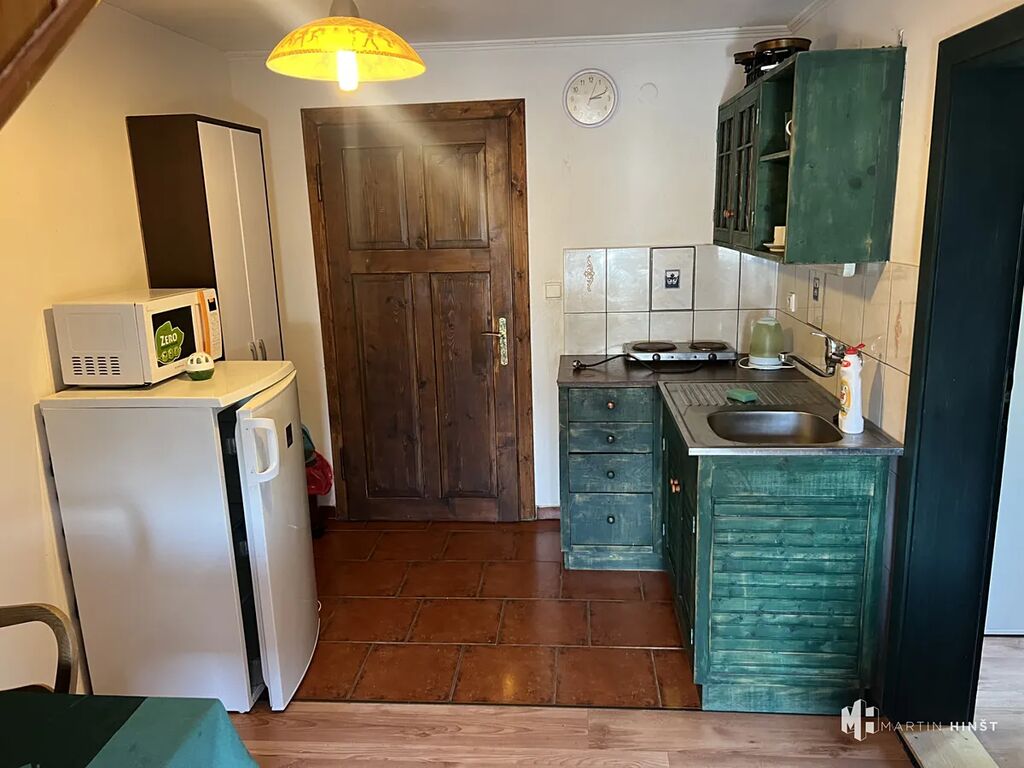 Nabízíme k pronájmu byt umístěný v 1 patře domu ve kterém se nachází čtyři samostatné byty. Byt se nabízí zařízený nábytkem (postel, skříň, komoda, stůl 2x židle) i spotřebiči (pračka, lednička, TV, el. dvouvařič, varná konvice a částečně kuchyňské nádobí). V koupelně je sprchový kout a WC s odvětráním oknem. Naproti bytu je veřejná místnost, sloužící jako částečný sklad. Možnost úschovy kol v objektu.