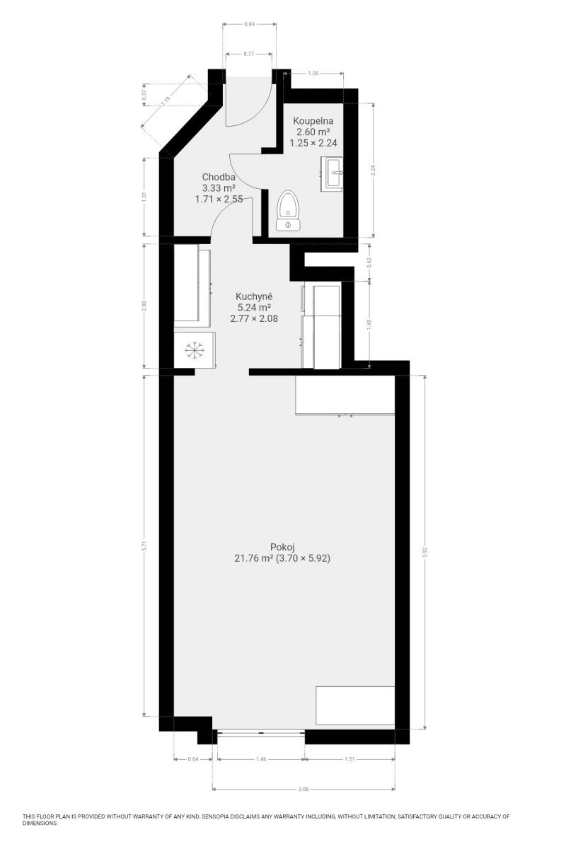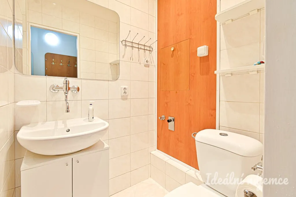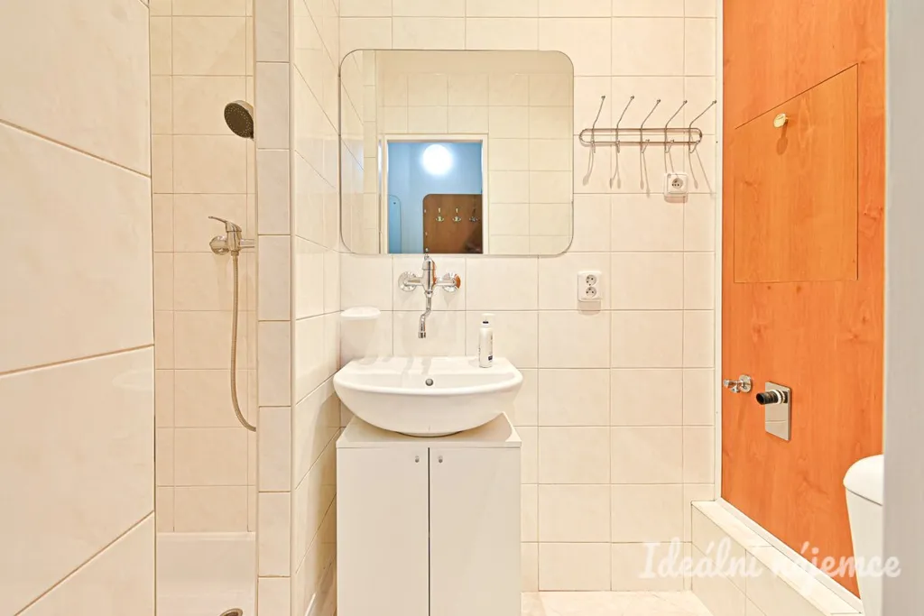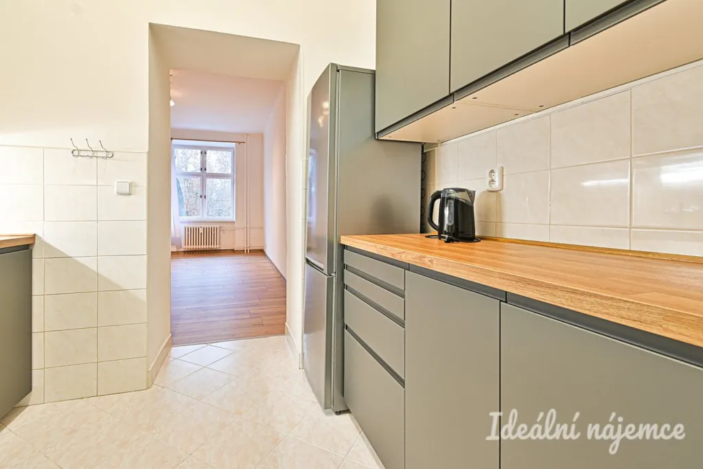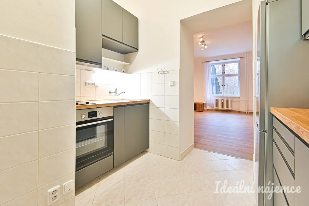 Byt se nabízí vybavený dle fotografií. Kuchyňská část je řešená prakticky, s dostatkem úložného prostoru. Obývací pokoj je světlý díky vysokým stropům a velkým oknům, které zároveň poskytují příjemný výhled do ulice a zeleně. V koupelně najdete sprchový kout, umyvadlo a toaletu.