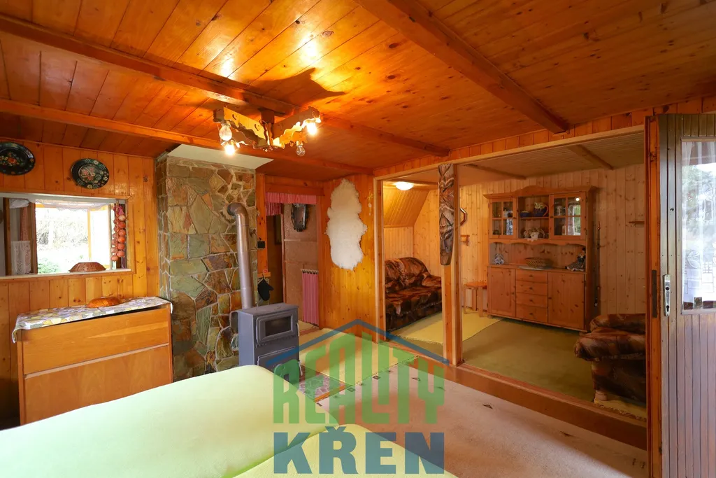 Prodej udržované chaty 70 m2 na vlastním pozemku v blízkosti rybníka Chmelař. Chata se skládá z prostorného obývacího pokoje se vstupem na terasu, dvou pokojů ve druhém nadzemním podlaží, kuchyně, verandy, koupelny, toalety a zázemí v suterénu (dříve garáž, nyní využíváno jako sklep a dílna).