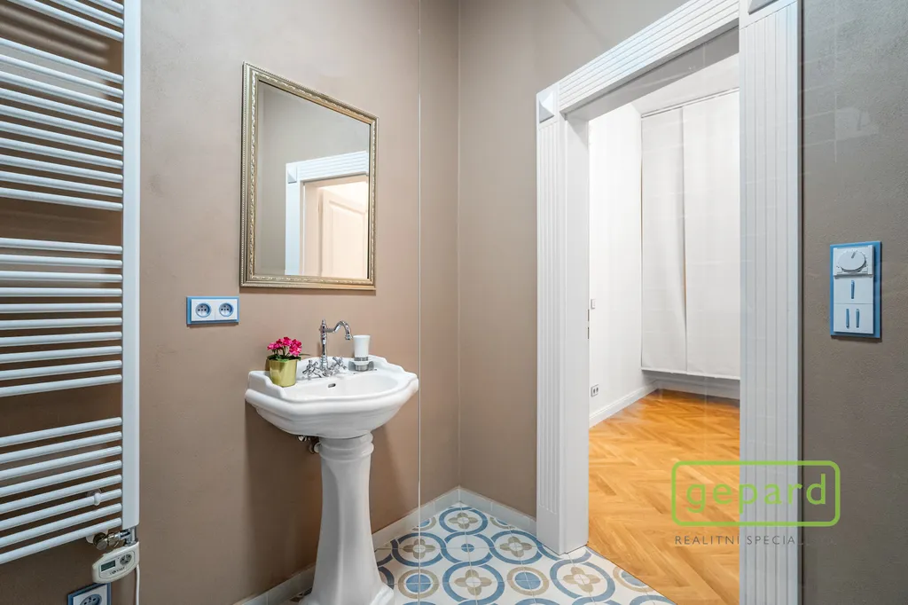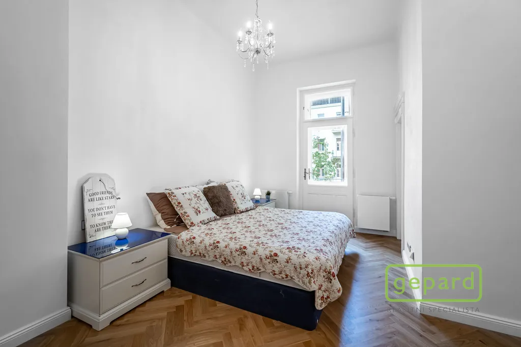 Jedná se o bytovou jednotku, kterou by majitelka ráda pronajala ke komerčnímu užití. Jednotka se nachází ve 3. NP hezkého činžovního domu. Vchodovými dveřmi se dostaneme do prostorné předsíně, z které lze pokračovat do obývacího pokoje, ložnice a koupelny a WC. První "Obývací" pokoj je velmi prostorný a lze z něj pokračovat do prostorné plně vybavené kuchyně s jídelním stolem nebo do druhého samostatného pokoje. Třetí pokoj "Ložnice" je orientována do vnitrobloku a je zde vchod na balkón a do šatny. Byt je částečně vybavený. V jednotce se nachází 2 koupelny.