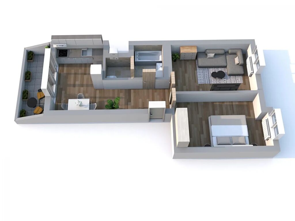 Za 5 min budeš pěšky v centru. Byt má 45 m2 + terasa 6 m2.
