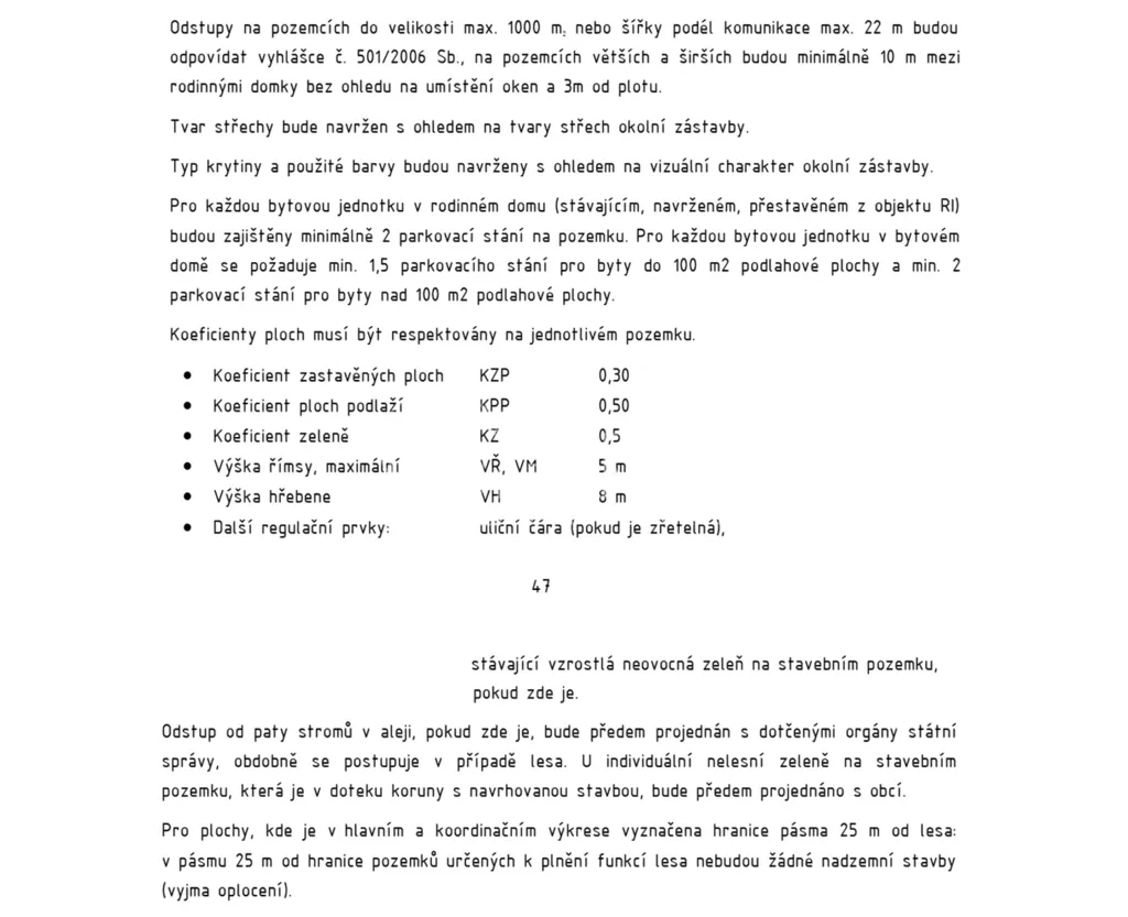 ✔ Koeficient zastavěných ploch: 15 %