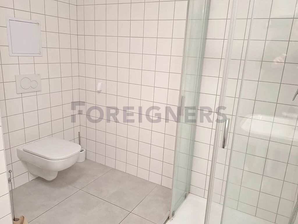 Byt se pronajímá částečně zařízený s vybavenou kuchyní, tj. lednicí s mrazákem, myčkou, elektrickou troubou, indukční deskou, digestoří.