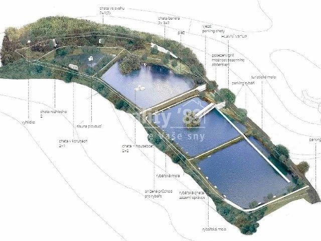 Byla zpracována architektonická studie na rekreační ubytování v tichém intimním režimu s vyloučením a oddělením veřejnosti, v několika malých moderních objektech rozmístěných tak, aby se navzájem vizuálně a provozně nerušily. Součástí studie je také plovoucí sauna a restaurace s příjemným posezením nad částí jednoho z rybníků.
