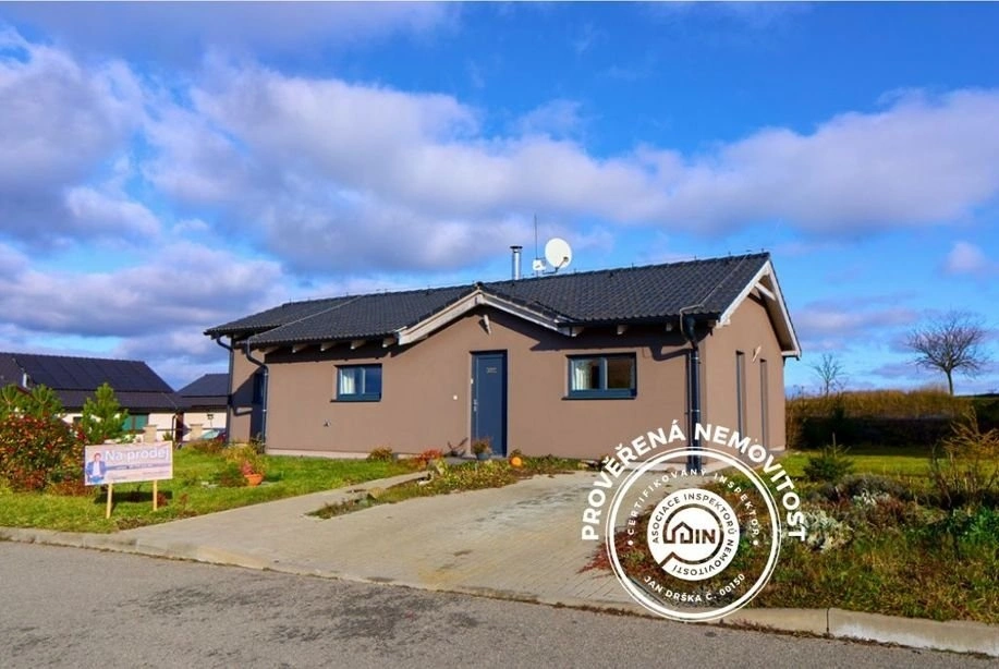 Jedná se o moderní dřevostavbu s užitnou plochou zhruba 85 m², která stojí na pěkném rovinatém pozemku