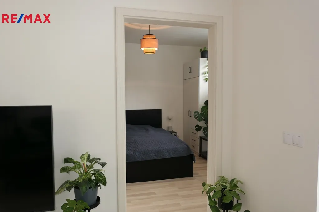 Byt sestává z předsíně, prostorného obývacího pokoje s odděleným kuchyňským koutem, ložnice, koupelny včetně WC, komory a z obou místností přístupného balkónu; k bytu náleží kóje (cca 2,5 m2), umístěná na témže podlaží a parkovací místo na přilehlém parkovišti.