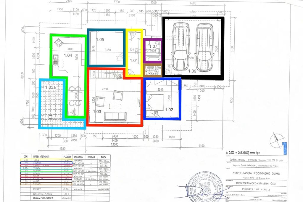 Součástí nemovitosti je prostorná garáž (31,52 m²) pro dvě auta a terasa (13,12 m²), ideální pro ranní kávu i odpočinek po dlouhém dni. Celková podlahová plocha k užívání je tedy 220,37 m².