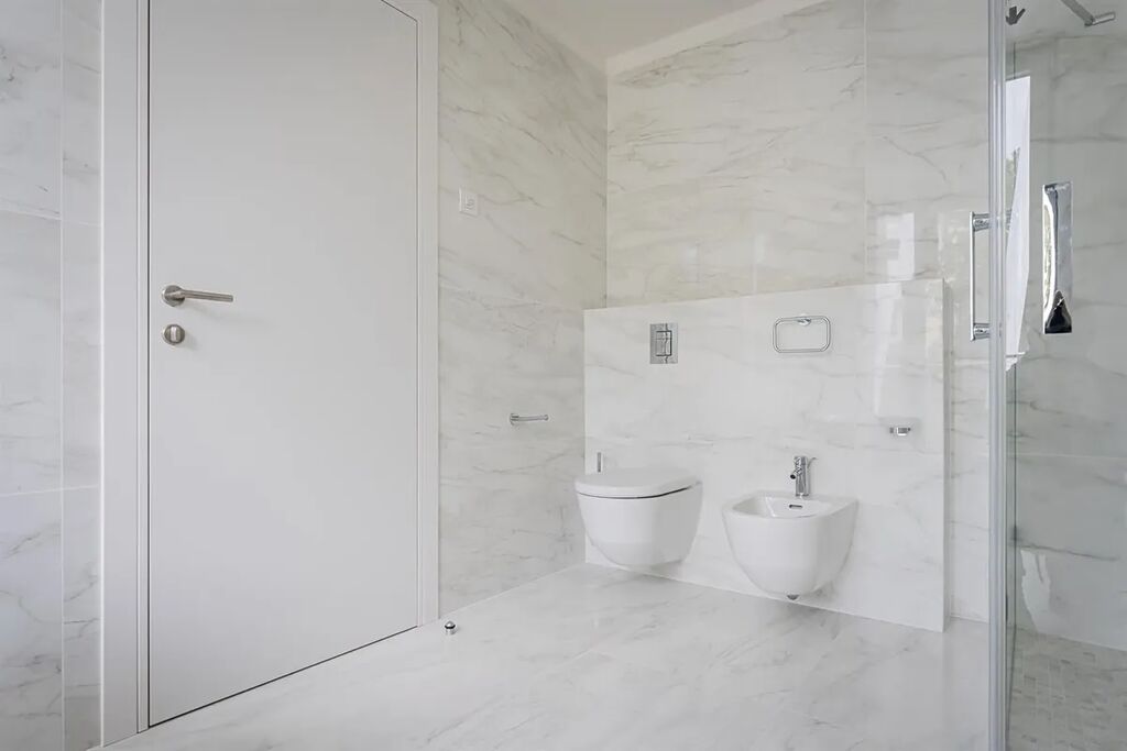 Interiér tohoto jedinečného bytu je nezařízený a dispozice nabízí v hlavním patře vstupní halu (18,92m2) s točitým schodištěm do patra, prostorný obývací pokoj (66,44m2) s krbem, plně vybavenou moderní kuchyní s vestavěnými spotřebiči (sporák, trouba, myčka, lednice, mrazák) a vstupem na jednu z teras, tři samostatné ložnice orientované do tichého vnitrobloku a se vstupy na terasu, dvě koupelny (jedna soukromá (11,33m2) k dispozici z hlavní ložnice, druhá (11,77m2) z chodby), obě s vanou, sprchovým koutem, toaletou, bidetem. Hlavní patro dále nabízí chodbu, technickou místnost a samostatnou toaletu, hlavní ložnice má k dispozici soukromou šatnu. Horní patro nabízí prostornou otevřenou galerii (26,81m2), kterou lze využít jako ložnici/pracovnu/pokoj pro hosty a relaxační místnost s wellness, saunou, koupelnu se sprchovým koutem, toaletou, a přímým přístupem na soukromou střešní terasu se zahradou a krásným výhledem.