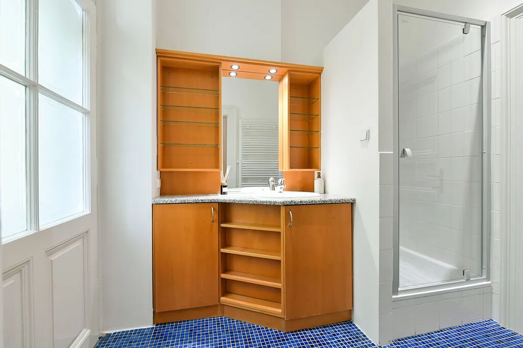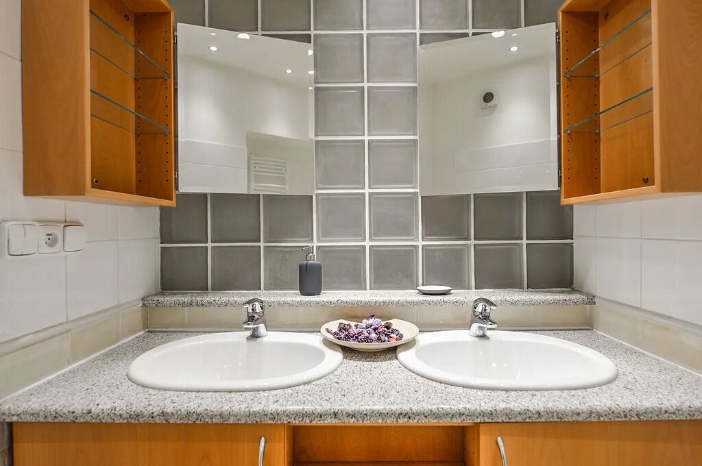 Interiér bytu je nezařízený, lze byt dovybavit nábytkem po dohodě. Dispozičně byt nabízí v prvním podlaží vstupní chodbu, prostorný světlý obývací pokoj propojený s kuchyní. Aktuálně se v bytě renovuje kuchyň, bude jiná než na fotce. Vybavení kuchyně tvoří americká lednice, varní deska, trouba, myčka. Další vybavení bytu: pračka se sušičkou, vestavěné skříně. Dále se v prvním podlaží nachází samostatná ložnice s vlastní koupelnou s balkónem. Koupelna je vybavená sprchovým koutem a toaletou, která má jak vstup z koupelny, tak i další vstup z chodby.