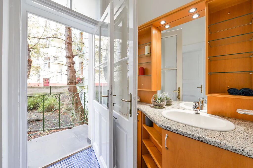 Nově zrekonstruovaný mezonetový byt 3+1 (2 ložnice, 2 koupelny), s balkónem, o celkové rozloze 118 m2, je situovaný ve 1. patře a v přízemí, rekonstruované rezidenční budovy s výtahem v populární lokalitě Praha 2 Vinohrady, v ulici Mánesova.