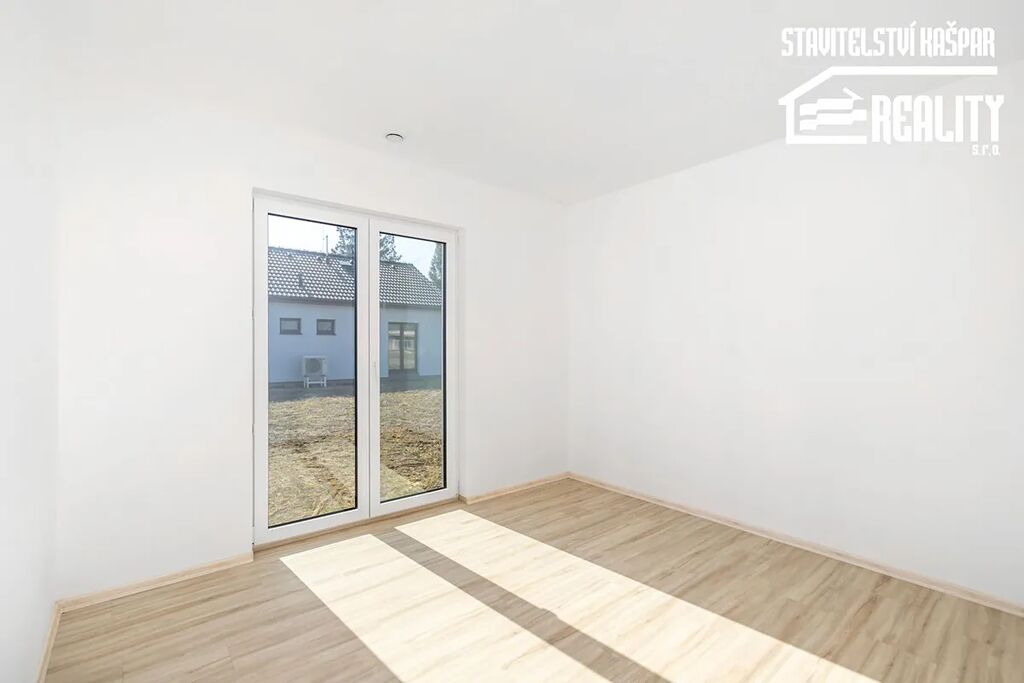V domě se nachází zádveří, chodba, technická místnost, samostatná toaleta, prostorný obývací pokoj s kuchyňským koutem, ze kterého je přímý vstup na terasu, ložnice, dva pokoje a koupelna. Vytápění je zajištěno vodovodním podlahovým topením napojené na tepelné čerpadlo vzduch-voda. (Daikin Altherma III generace) Součástí stavby je také příprava pro venkovní žaluzie (kastlík + el. kabel), vzduchotěsné výlezové schůdky Wippro včetně 15 m2 pobití půdního prostoru z prken.