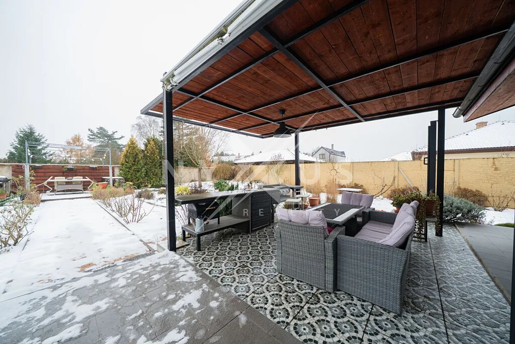 Ze všech pokojů je přímý vstup na zahradu - vzrostlá zahrada s dokonalou atmosférou a dostatkem místa pro saunu či vířivku. Na zahradě se nachází kůlna/zahradní domek o ploše 18 m².