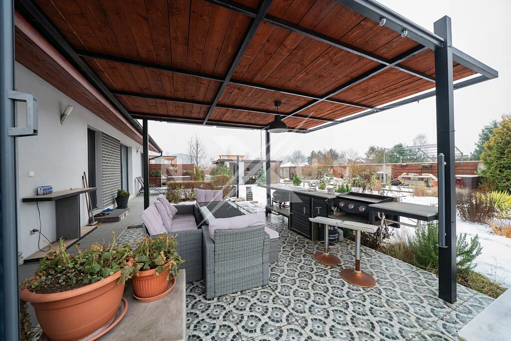Rodinný dům z roku 2019 nacházející se v klidné a neprůjezdné obci Křenek, poblíž Staré Boleslavi. Jedná se o dřevostavbu o dispozici 3+kk o celkové užitné ploše 81 m².