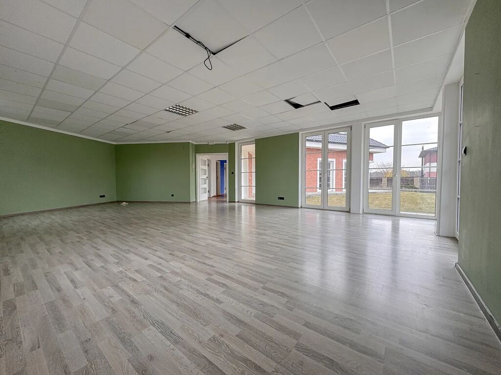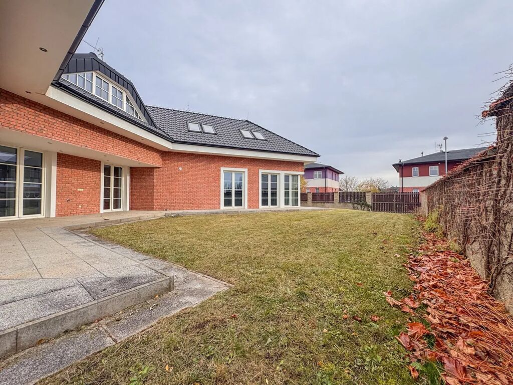 V přízemí domu se nachází vstupní hala a několik velkých místností s francouzskými okny a přímými vstupy na terasu a zahradu. Prostor lze využít jako obývací část, pracovnu, pokoj pro hosty nebo reprezentativní klientské zázemí. Na obytnou část navazuje příprava pro kuchyň s praktickou komorou, moderní koupelna se sprchovým koutem, toaletou a bidetem, technická místnost a prostorná dvougaráž s elektrickými vraty a vstupem přímo do domu. Díky otevřeným plochám je možné přízemí snadno přizpůsobit konkrétním potřebám – rodinnému provozu, kancelářím, studiu, showroomu či službám.