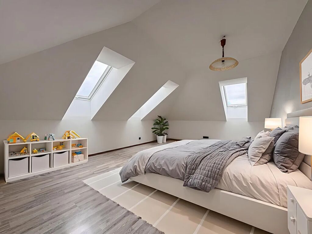 V podkroví najdete světlou chodbu, tři samostatné ložnice a hlavní koupelnu s vanou a dvojumyvadlem. Dominantou podlaží je mimořádně velká místnost o ploše cca 98 m², která nabízí široké možnosti využití – může sloužit jako velký obývací pokoj, herna pro děti, domácí fitness, ateliér nebo společenský prostor pro rodinu i přátele.