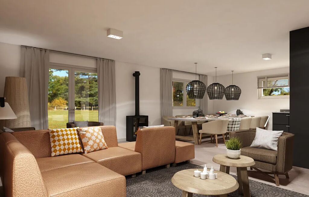 Každý chalet bude novému majiteli předán kompletně vybavený nejmodernějším nábytkem, doplňky, vysoce kvalitní kuchyňskou linkou a kompletně vybavenými koupelnami.