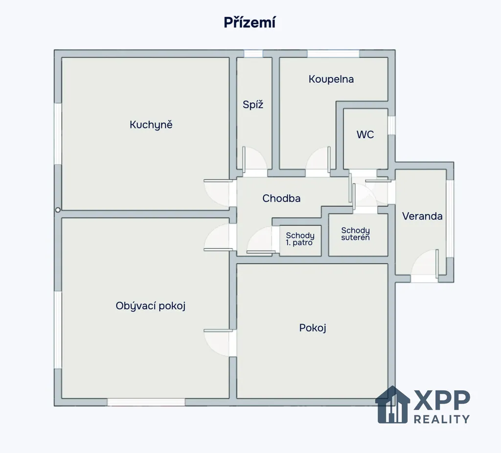 Dispozici domu tvoří vyvýšené přízemí se vstupní verandou, chodbou, kuchyní s prostorem pro jídelní kout, obývacím pokojem, ložnicí, koupelnou, samostatnou toaletou a spíží. V obytném podkroví se nacházejí dvě ložnice a několik půdních prostor, které je možné upravit na další obytné místnosti. Součástí domu je také kompletně podsklepený suterén, kde se nachází garáž, kotelna, prádelna, dílna a skladové místnosti.