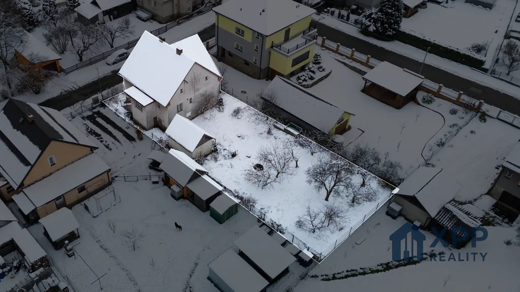Na zahradě se nachází několik vzrostlých ovocných stromů a zděná kůlna o užitné ploše 13 m² vhodná jako sklad nebo dílna. Pozemek nabízí dostatek místa pro odpočinek, zahrádku i rodinné zázemí.