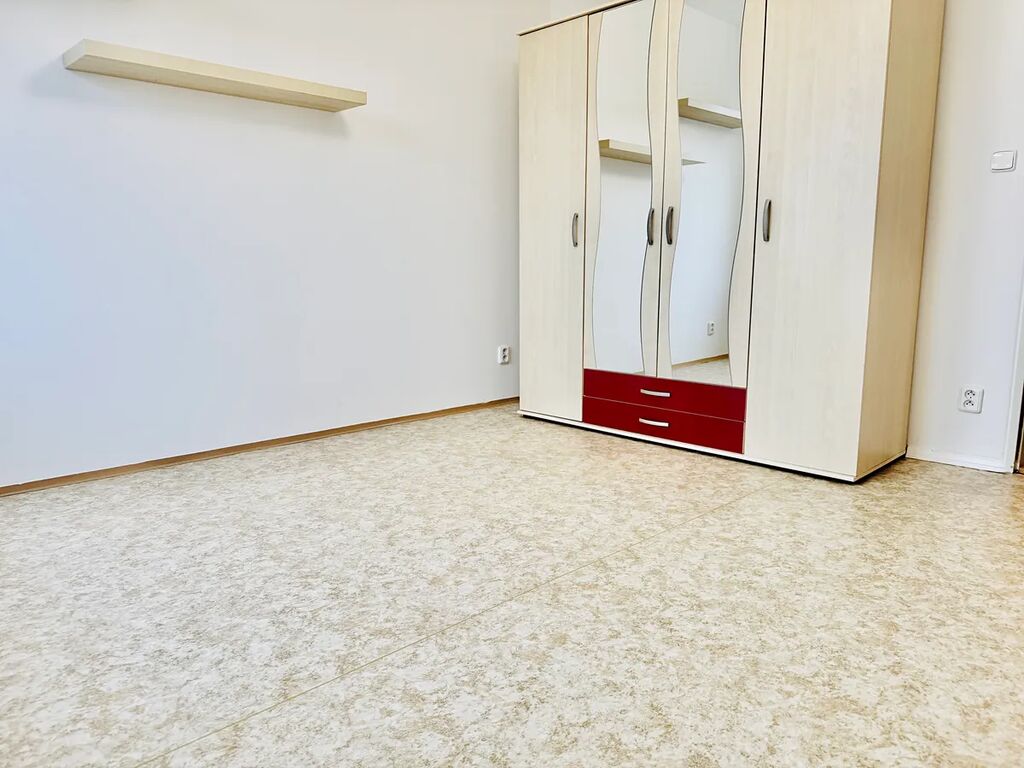Dispozice: vstupní předsíň, šatna/komora, koupelna s oknem - denní světlo a možnost přirozeného větrání, v koupelně topný žebřík, pračka, vana. Toaleta je samostatná. Obývací pokoj s kuchyňským koutem. L ožnice.