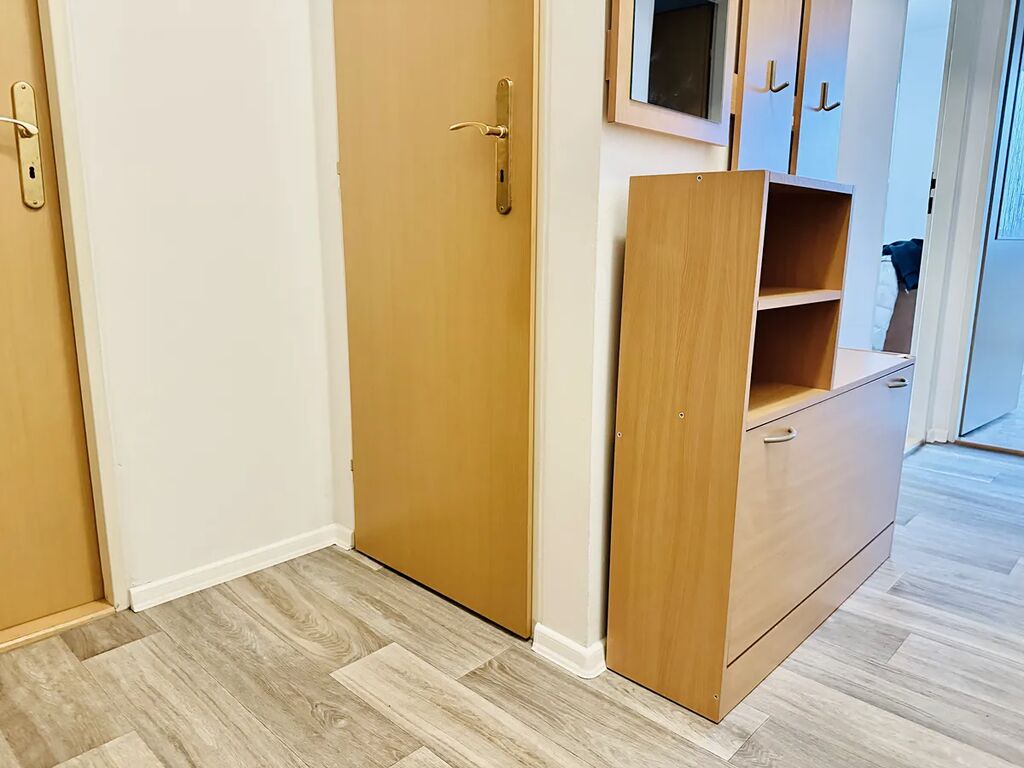 Předsíň: nástěnná deska s věšáky, botník, domácí telefon, osvětlení.