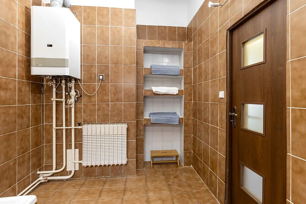 Teplo domova? Doslova! Byt je vytápěn ústředním plynovým kotlem, který zároveň ohřívá teplou vodu. A když chcete víc atmosféry (nebo úsporu energie), stačí zatopit v krbových kamnech v obývacím pokoji –vytopí celý byt. O tepelný komfort se postarají i nová okna s dvojskly a trojskly.