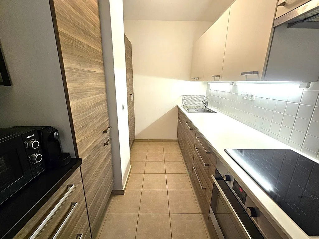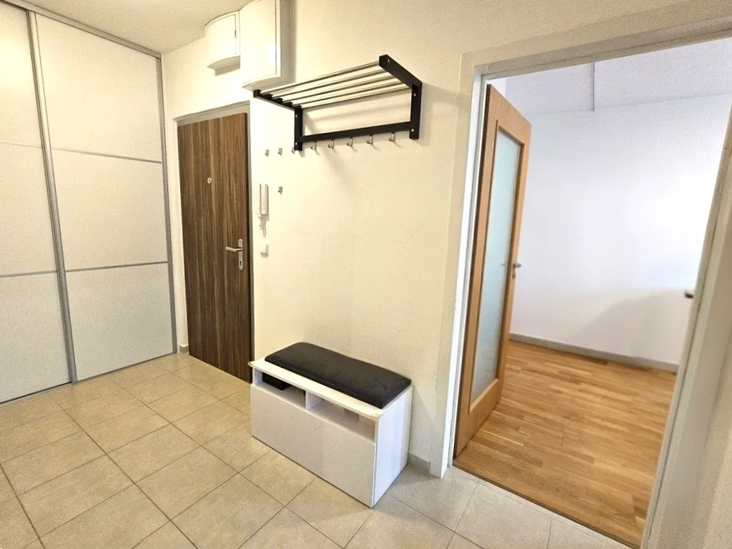 Byt je nezařízený nábytkem. K dispozici je moderní kuchyňská linka s vestavěnými spotřebiči - sklokeramická varná deska, digestoř, el. trouba, myčka, lednice s mrazákem, mikrovlnná trouba a prostorná potravinová skříň s vysouvacími šuplíky a skříň s policemi. Z nábytku jsou 3 vestavěné šatní skříně, věšák a botník. V koupelně je sprchový kout. WC je zvlášť. Na podlaze jsou parkety a dlažba. Topení je ÚT. Parkování je možné na ulici (modré zóny). K bytu náleží sklepní kóje, která se nachází v přízemí a možnost užívání společné kolárny.